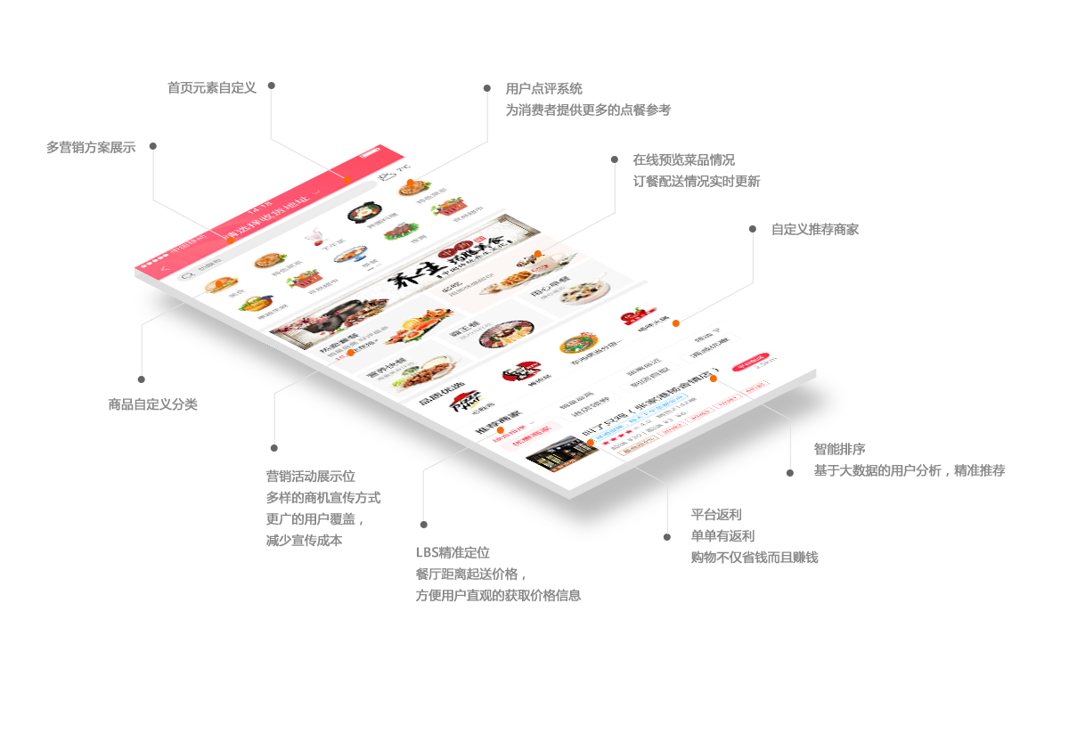 加盟商可根据外卖、团购、跑腿、拼团、砍价团这五大业务完全自主设置新人大礼包或任意形式的优惠券;新用户推荐